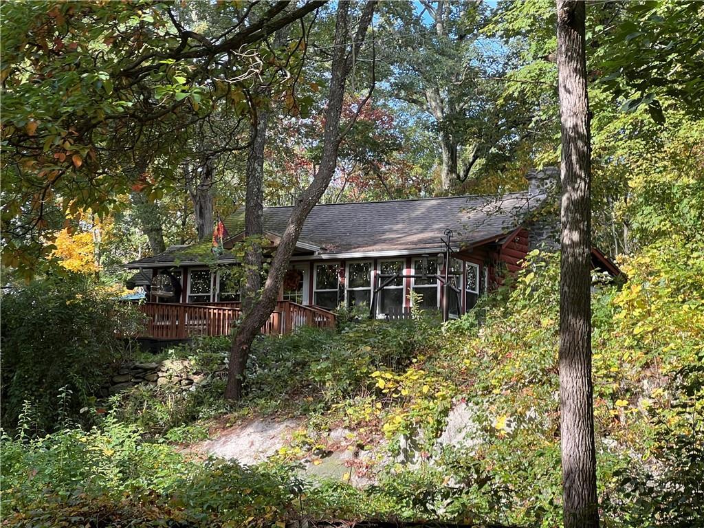 Accepted Offer 10/13. Inspection complete/contracts out. (ICCO). Picture perfect and postcard worthy log cabin nestled on 5.57 acres of partially tamed woods. This park-like acreage has several trails that have been lovingly marked. Several vantage points have been staged with seating to enjoy nature, sunsets, and the serenity of being secluded in the woods. A perfect getaway or permanent year round cozy home. An enclosed front porch looks out to the driveway and a sprawling view of the property. A hand-carved thick front door opens into a large & inviting living room with open-concept dining and work areas adjoining. Hardwood floors gleam throughout. Kitchen is aesthetically perfect for this cabin and boasts a large stainless steel refrigerator. Two comfortably sized bedrooms can fit a king and double bed respectively. Full bath has tucked away washer and dryer! Backdoor leads from kitchen to your backyard oasis. One deck holds a medium sized hot tub, while the other serves as your grilling station and outdoor entertainment hub. It’s a perfect vantage point from which to bask in the simplicity and charm of the countryside that is incredibly just a one hour train ride away from Manhattan. Two other structures on the property are currently used for storage, front porch rocking-chair-sunset-viewing; and as a music and writing studio. Both have potential to be turned into cozy, single-cabins for guests or possible Airbnbs, with the right permissions from the town. Just down the road, White Pond is great for fishing, kayaking and other outdoor fun. Schedule a tour today to see this incredible gem and make it your own in time for next spring. Kindly send preapproval or proof of funds for cash sales when requesting a showing. Owner occupied, therefore, 2 hour notice desired.