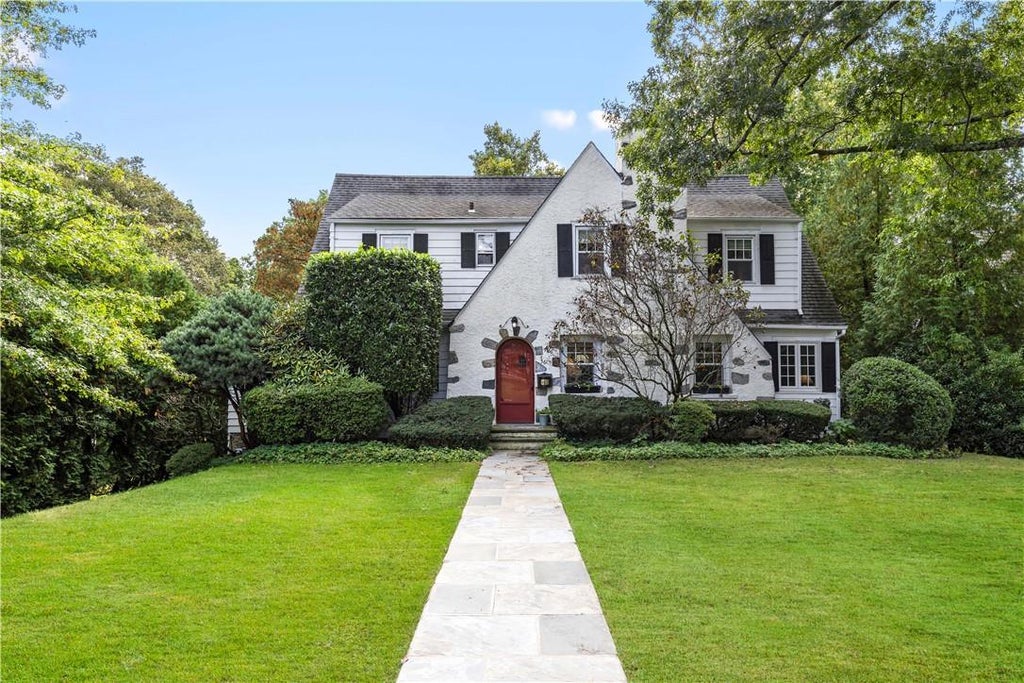 Located on a quiet street in sought-after Scarsdale neighborhood, 56 Woods Lane offers the perfect blend of character & convenience. Walk to NYC train, village shops, restaurants, parks, Edgewood Elementary & Scarsdale HS. Free bus to Scarsdale MS. The home features 4 bedrms, plus an office, 2 full bathrms & a powder rm. A nicely renovated kitchen opens to the rear deck overlooking a flat, bucolic backyard—serene & private, perfect for outdoor dining & play. The interior showcases lovely hardwood floors, character moldings & arched front door. Off the kitchen is a private home office (potential 5th bedrm). On Level 2, there is a spacious primary bedrm w/ensuite bath & 5 closets, plus 3 add'l bedrms & hall bath. High ceilings & a large, walk-out, unfinished basement storage area offer great potential for future recreation rm &/or home gym. Add'l amenities incl 2-car attached garage, gas heat, central air, EV charger, versatile floor plan, sunny interior & fab location!