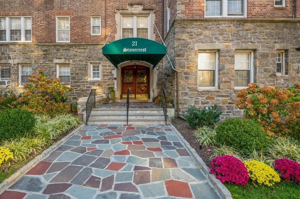 This bright and sunny fourth floor unit overlooks the interior garden area. Enter into a roomy entrance hall w/closets. To the left find an eat-in kitchen that easily fits a table for 4 and has windows on two exposures. Although it is currently a studio, the main living area is quite large and could be flexed to create a bedroom. The bathroom sits off of the closet vestibule and could be expanded into a walk-in closet. Hardwood floors and original moldings give this unit a classy, timeless and homey feel. The Stonecrest building has active social events, an outdoor seating area, a large indoor lounge, shared laundry and storage spaces in the basement. Great doorman building in the heart of Larchmont! Walk to the train, farmers market, shops etc. Come visit today.