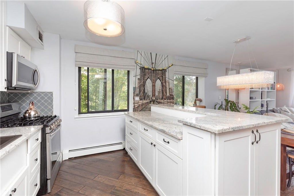 Welcome to Bronxville Glen North-desirable sun-filled 1 bedroom plus den being used as a 2nd bedroom/office) (lives like a 2 bed), 2 full bath Condo with Large Balcony in sought after 24-7 Gated Community with park like setting. Enjoy an open floor plan in this beautifully renovated unit which features quality wood flooring, kitchen with lots of cabinetry, stainless steel appliances, washer/dryer, central AC., abundant closets. The primary bedroom has a full bath and walk-in-closet with custom shelving. The hall bathroom has a shower. There is a private space for storage in the building and a separate bike room. Conveniently located close to all major highways and metro north RR-- Walking distance to Fleetwood train station. , buses, Shopping Center, restaurants, local eateries and more! There is a fitness center, private outdoor pool with barbecue facility; unit comes with 2 unassigned outdoor parking spaces. Ample guest spaces as well. (New 8 month roof assessment of $180.80 ends June 2025) Pet friendly- one pet per unit Non-smokers only. Just a 5 minute drive into Bronxville Village.