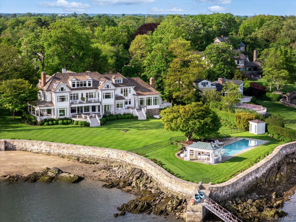 One of Westchester’s most distinguished waterfront estates, Villa Cheri is a legacy property where architectural provenance meets modern luxury. Originally built in 1898 and exquisitely reimagined through a multi-year transformation completed just four years ago, this iconic residence is set gracefully along the Long Island Sound, offering panoramic water views, lush gardens, and an unparalleled lifestyle experience. Behind its timeless facade, Villa Cheri reveals a home of exceptional vision and scale. Seven bedrooms and twelve bathrooms unfold across luminous living spaces, each finished with hand-selected materials, custom millwork, and a curated balance of historic detail and contemporary refinement. Expansive walls of glass dissolve the boundary between indoors and out, immersing the home in its natural setting and flooding every room with light and sweeping water views. At the heart of the estate is a chef’s kitchen of international standard, anchored by a 94-inch custom L’Atelier Pro range and a full suite of Gaggenau appliances. Waterfall countertops and bespoke Le Rhone ash cabinetry elevate both form and function. Designed for entertaining at the highest level, the home features a formal dining gallery, a piano alcove, a temperature-controlled wine room, and multiple lounges that invite effortless hosting. The amenity offering rivals the world’s most exclusive retreats: a private spa wing with massage room, steam room, and sauna; a fitness studio, billiards room, game room, and pet spa. Expansive terraces and covered porches frame the meticulously landscaped grounds, leading to a luxury pool, pool house, and deep-water dock—an extraordinary feature offering direct access to the Sound and beyond. Every inch of this residence has been thoughtfully designed to offer distinction, privacy, and quiet grandeur. Villa Cheri is more than a home—it is a statement of place, design, and enduring elegance in one of Larchmont’s most coveted coastal enclaves.