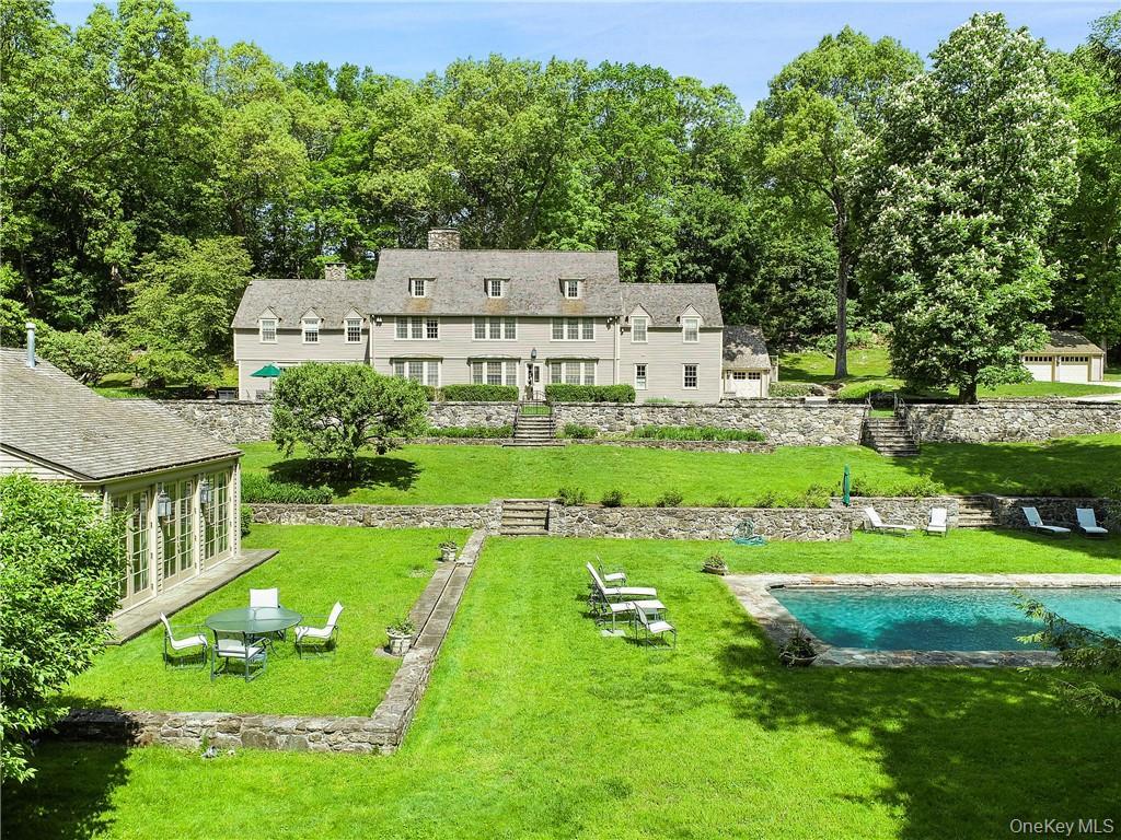 HOPE HILL. Nestled on nearly 20, graciously landscaped acres. Remarkable 1918 Center Hall Colonial Estate with a timeless elegance and old-world architecture. Named “Hope Hill” after World War II as an inspiration for peace. A true classic impeccably built with balanced proportions, a stately presence and period details that honor its historical roots while offering the comfort and functionality desired today. Stunning interior with well-proportioned rooms, substantial moldings, period hardware, random-width hardwood floors, French doors and four fireplaces. Center Entrance Hall with gracious curved staircase. Den with fireplace-perfect for working remotely. Ideal for elegant entertaining, beautifully scaled Living and Dining Rooms—both with fireplaces. Well-designed Country Kitchen open to Family Room. Luxurious Primary Suite with Sitting Room, fireplace and two Baths. Four additional Bedrooms plus Nursery. Media Room and Gym. Long, long drive to perfect privacy. Located in a foremost Bedford estate area with fenced paddocks and direct access to the Bedford Riding Lanes. Gorgeous estate with gently rolling lawns, incredible stone walls and terraces and incredible plantings. Rear terrace overlooking the Swimming Pool and the incredible Pool/Guest House with Great Room, Kitchen, Two Bedrooms and Spa Bath. Tennis Court and indoor squash court with basketball hoop. Garages for eight cars. Rich in character and thoughtfully designed for today’s lifestyle, this home is a true embodiment of Colonial tradition and enduring quality. A remarkable offering!